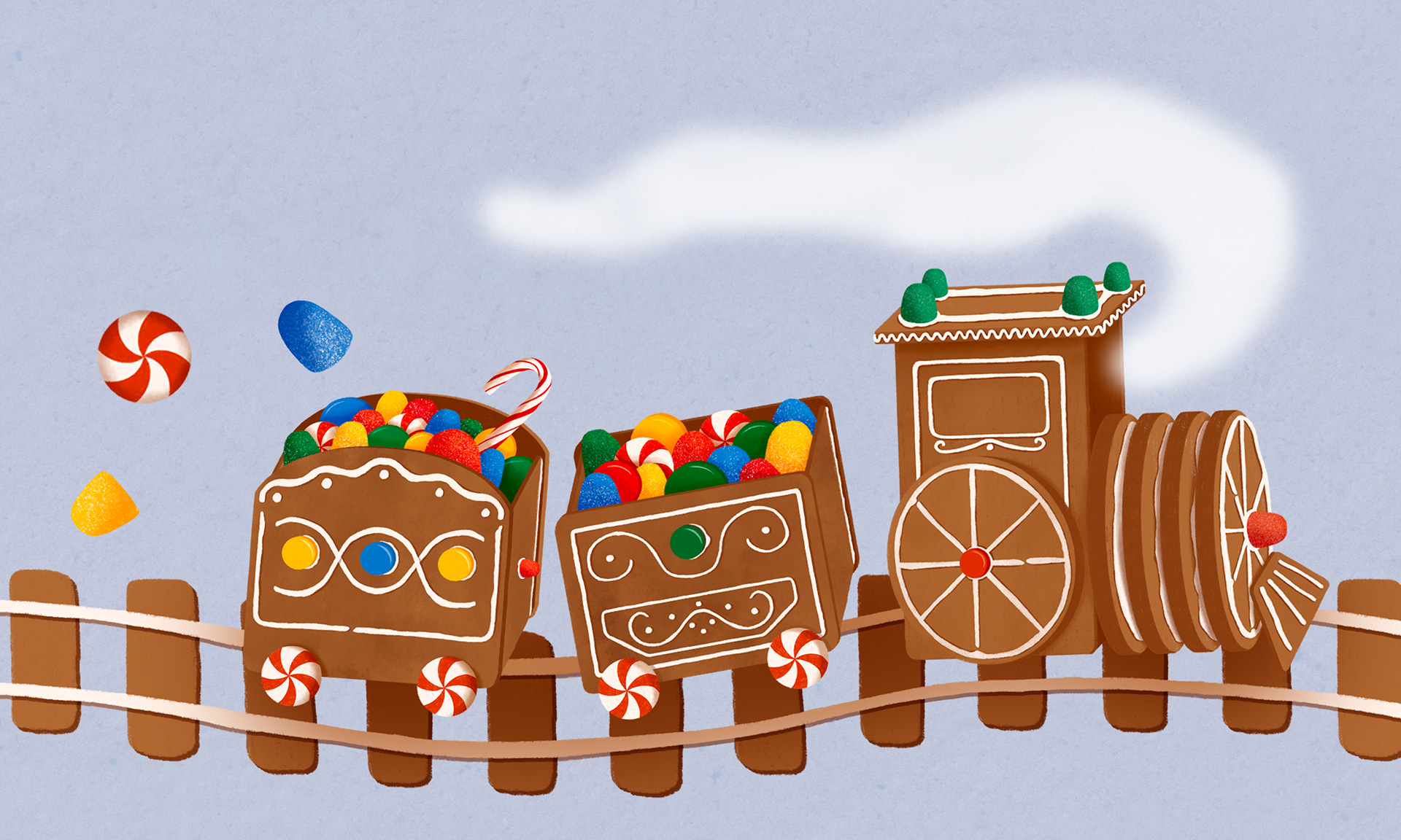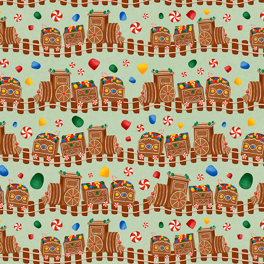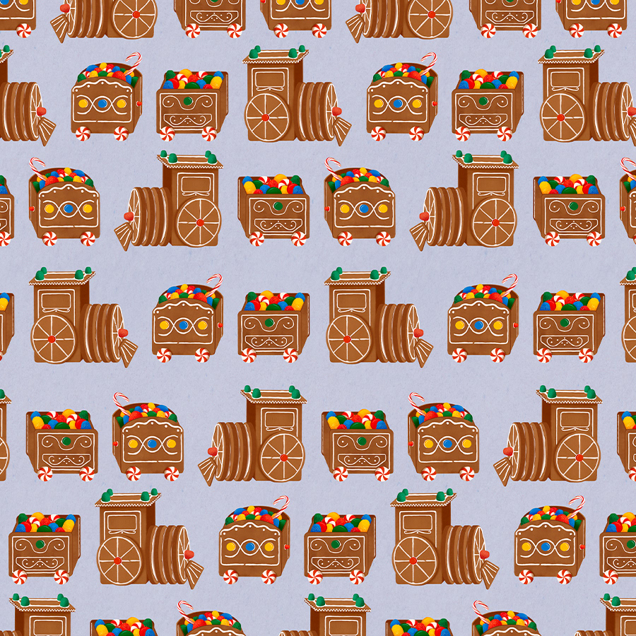 The Gingerbread Express is a Christmas-themed mini-collection. Growing up, I loved trains, and I always loved doing the gingerbread kits with my family. These patterns combine those two fond memories into one fun collection.