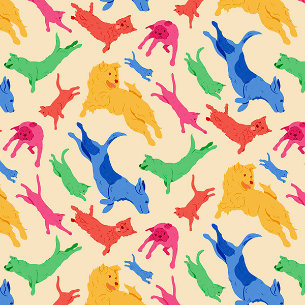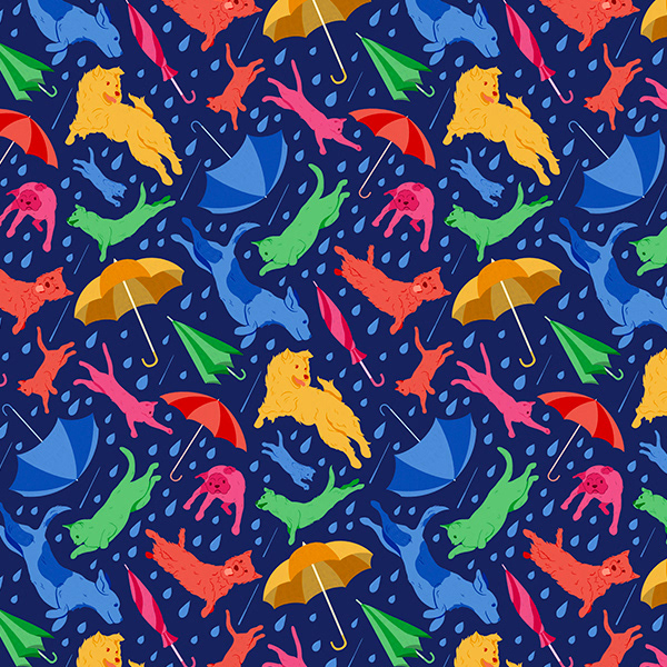 It's Raining Cats and Dogs is a mini-collection themed around the common saying. Inspired by a childhood umbrella, I wanted to breathe my own style into these patterns.