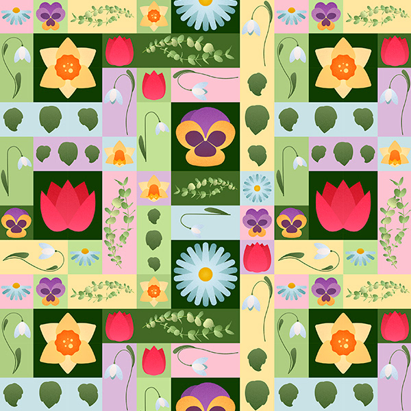 Quilted Florals is a small pattern collection inspired by, well... quilts and florals. I love having quilts on my bed, and florals are a common motif in the quilt industry. So here's my take on quilted florals.
