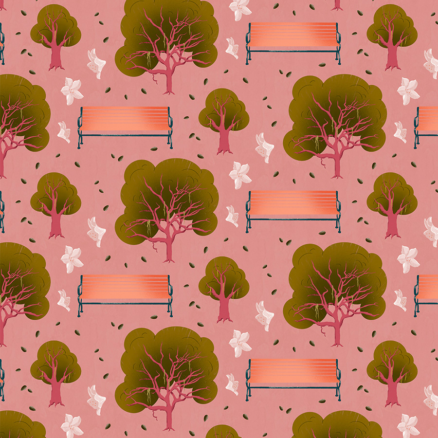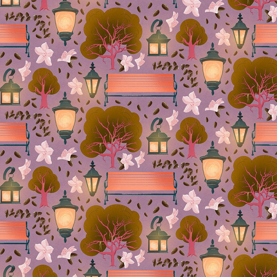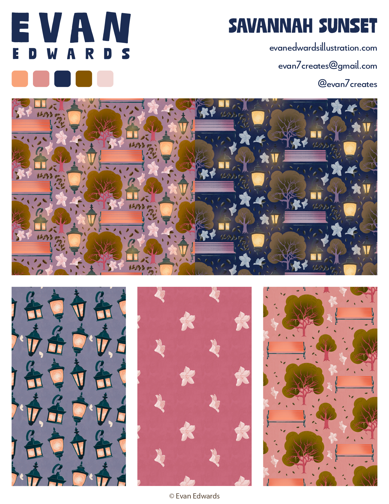 Savannah Sunset is a location-themed collection based on Savannah, GA. These patterns and spot illustration would be great for gifting, stationery, and home decor.