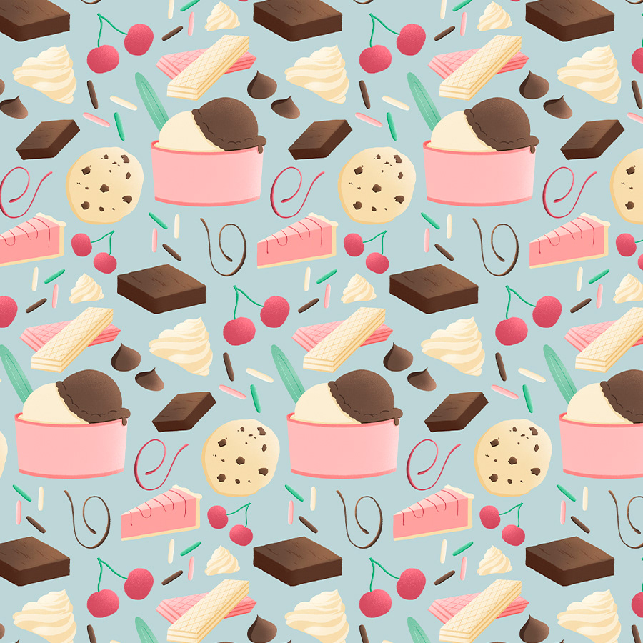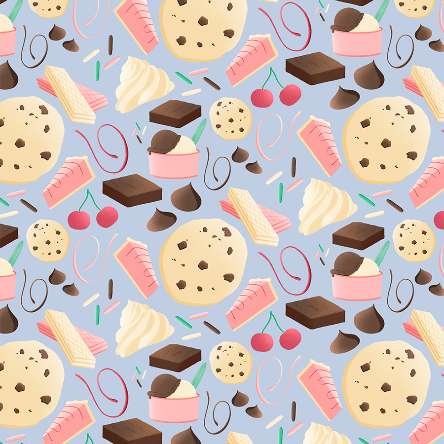 Sweet Cravings is a mini pattern collection themed around everyone's favorite desserts. These patterns would be great for fabrics, stationery, or branding.